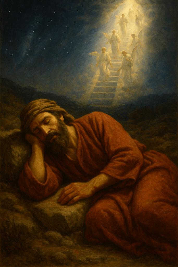 Mas ali, no deserto, Deus se revela, e transforma uma pedra em altar e uma noite em promessa.